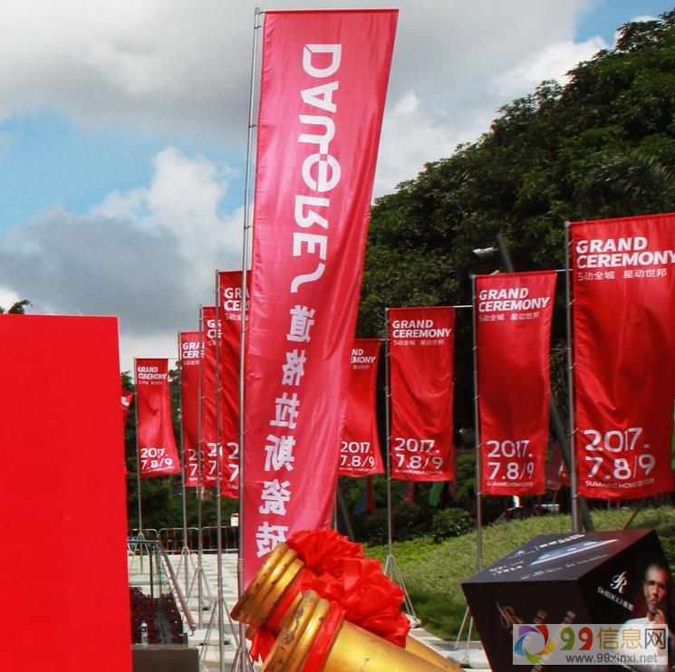 每当楼盘、大型商场开业或大型庆典活动要进行,我们都会看到写真喷绘广告刀旗的身影原文www.99xinxi.net。刀旗是因其形状而得名,是形状如刀的旗帜,也叫户外旋转屏或者羽毛旗,或者扇形旗,是户外展览的展示道具,但随着广告行业的发展,现代的刀旗已经不断的改良,大都是方形,旗杆也可伸缩,便于观看。在沙滩,草地使用钎子插入地下,水泥地面则有十字底座、水袋或者沙袋配套来源www.99xinxi.net。